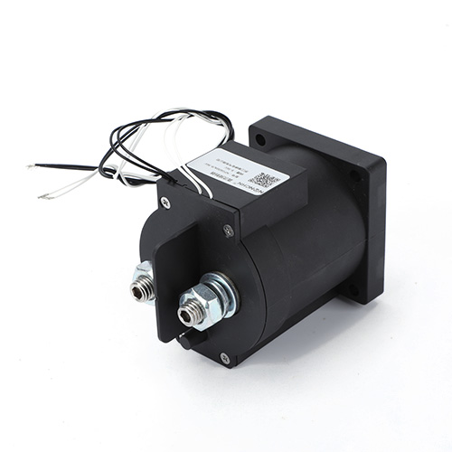 Capacité de coupure des contacts : 600 A. L’aimant permanent génère un champ magnétique horizontal pour obtenir une coupure du courant continu haute tension.